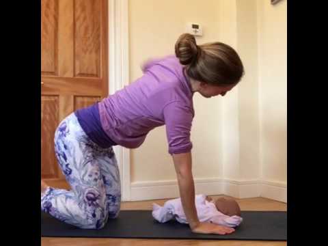 Threading the needle and side planks for the post natal body - yoga with baby.